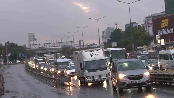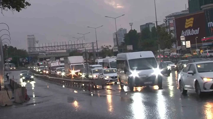 Yağış nedeniyle otobüs duraklarında yoğunluk oluşurken, trafikte de yer yer aksamalar meydana geldi.
